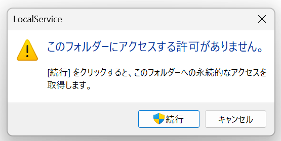 ファイルを参照する際にフォルダーのアクセス許可のポップアップが表示されます。